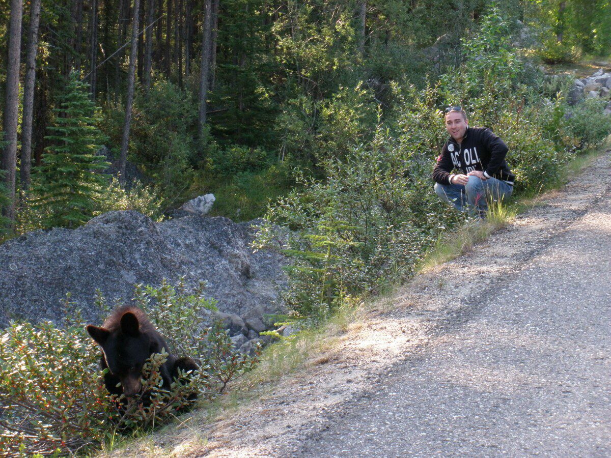 Ecco. Oggi ho cercato di totalizzare quanti più punti possibili con la macchina fotografica, scattando rapidissime foto all’indirizzo di cani della prateria che sbucavano, mentre noi si passava, durante il Safari allo Zoo Sauvage di Saint Félicien. Colpito! A dispetto del nome, lo Zoo Sauvage non è quello che in Italia definiremmo uno zoo. Qui hanno preso una collina, l’hanno recintata lasciando all’interno tutti gli animali che ci vivevano, dopo di che hanno detto “Signori, se volete entrare, accomodatevi, ma questa è casa loro…”. Allo Zoo Sauvage si segue prima un percorso a piedi su passerelle da cui si vedono i macachi del Giappone, gli stambecchi, la gru canadese, il castoro, il porcospino, la lince, il coguaro (che non abbiamo visto), le foche… Quindi si entra nella voliera dei rapaci, dove occorre rimanere immobili qualora un’aquila, per esempio, ci voli troppo vicino, e infine si sale su un trenino blindato per entrare nella zona in cui vivono gli animali più feroci. In pratica, i visitatori sono messi in gabbia e si aggirano tra gli animali selvatici. Un’emozione fortissima. Tre, soprattutto, le ragioni per venire fin qui (luogo a oltre 300 km a nord di Sainte Anne de Beaupré, lontano dai più battuti percorsi turistici e non menzionato dalla Lonely): Rispettivamente: orso bruno americano, orso bianco e grizzly.