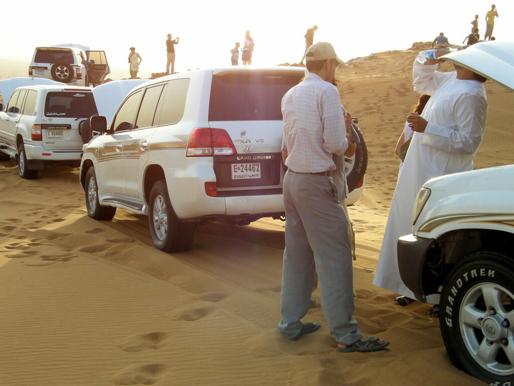 Dopo un caffè all’esterno, lungo il canale del forte ove si trova il souk,ci dirigiamo di nuovo alle Emirates Towers non immaginanado che alle 17.30 è ora di punta anche qui…Pazienza… Daremo la caccia alle targhe automobilistiche ,incolonnate come noi sulla Sheikh Zayad Road , per trovare finalmente quella con il Burj (le targe delle auto meno recenti hanno il suo simbolo prima della numerazione)oppure a qualche auto particolare tipo la Hummer streetched limousine. Anche per i maschietti c’è da perder la testa : per quelli patiti di automobili si incontra di tutto, anche quei prototipi che siamo abituati a veder sulle riviste, in fondo con la benzina a € 0,20 al litro… Per i più sofisticati c’è anche uno dei più bei campi da golf del mondo – Dubai Creek Golf Yacht Club- oppure si può giocare a polo…Ci sono anche tra i più bei cavalli al mondo : l’emiro di Dubai – Mohamed Bin Rashid Al Maktoum -tutti gli anni viene nella zona di Perugia ed organizza una manifestazione di Endurance equestre.