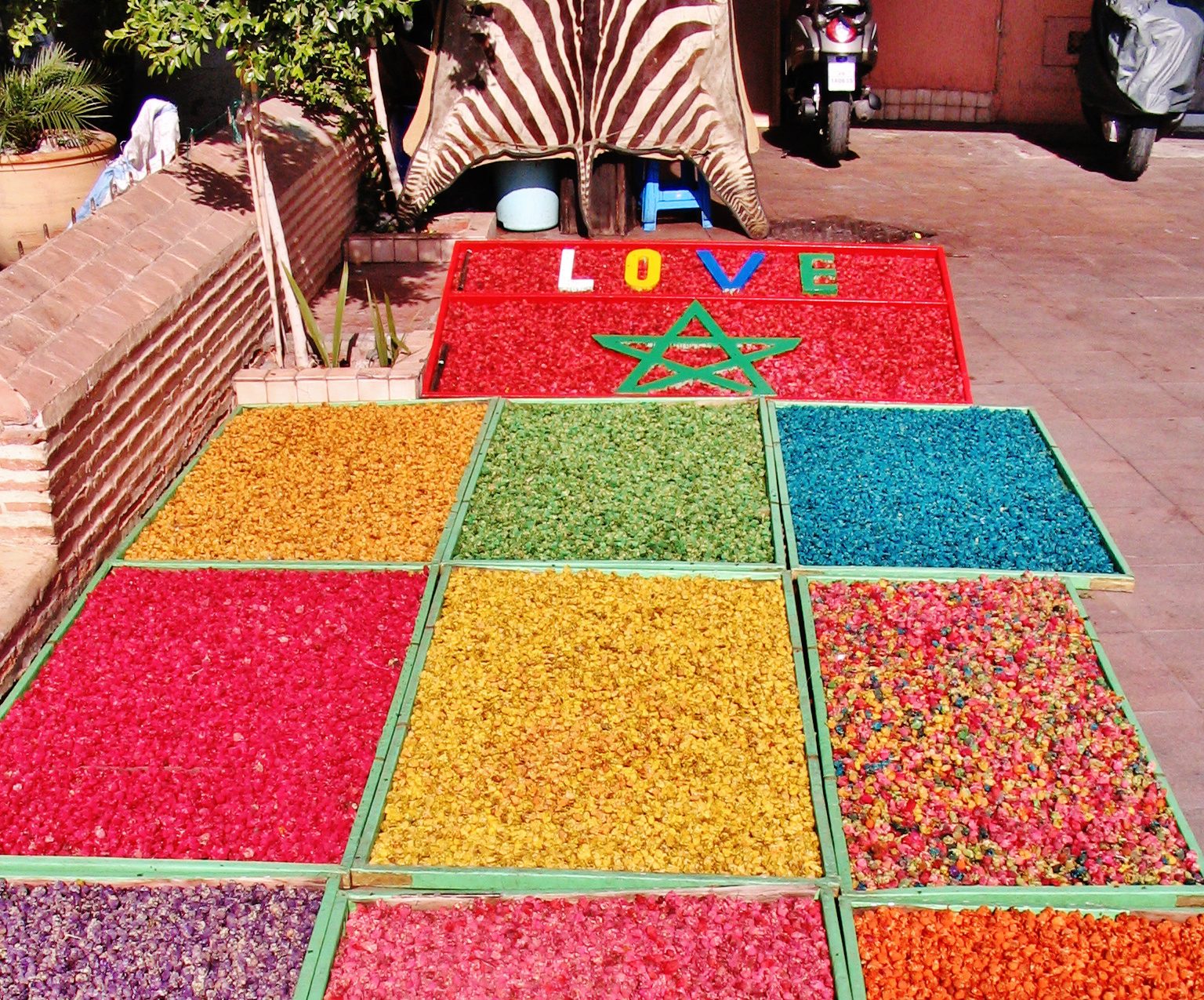 Passeggiando per la Medina mi imbatto in uno artista che disegna a mano libera dei bellissimi biglietti di auguri con dedica a richiesta. Con 40 dinari me ne porto a casa 2. Un souvenir davvero originale. Da un venditore ambulante con un carretto compro 4 dolci tipici marocchini fatti con pistacchi, cocco, mandorle e miele…naturalmente non senza preventivo assaggio. Per 150 dinari ne prendo 4 davvero grandi, mi sembrava di avere 4 mattoni nello zaino. Sempre nella Medina in un negozio seminascosto acquisto una tipica (almeno spero) maschera berbera spendendo, dopo una estenuante contrattazione, 200 dinari. Purtroppo, il tempo è tiranno ed è ora di tornare al riad, prelevare il bagaglio e andare all’aeroporto per il volo di ritorno. Mentre aspetto l’autobus mi gusto una spremuta di frutta mista in una delle tante bancarelle in piazza Jamaa el Fna che mi costa 20 dinari. Davvero dissetante.