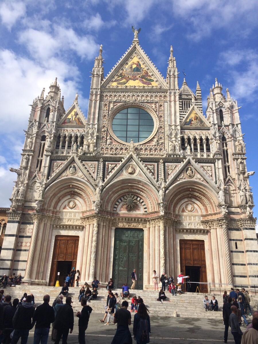 Il 2 giugno partiamo alle 6.30 da Seriate (Bergamo) e dopo aver fatto anche un’oretta di coda sull’autostrada, per le 12.30 siamo a Siena. Parcheggiamo fuori dalla fortezza medicea che nei festivi è gratis. Quindi ci dirigiamo verso il centro e incontriamo la Basilica Cateriniana San Domenico, che tra le altre meraviglie contiene la testa-reliquia di santa Caterina da Siena, entro una splendida cappella rinascimentale costruita per l’occasione. Visto l’orario ci catapultiamo nel centro di Siena per mangiare e ci capitiamo quasi per sbaglio in un ristorantino gourmet “Morbidi”, molto chic che fa il pranzo a buffet, molto particolare e consigliato per chi vuole mangiare bene e a buon prezzo (visto che i 12 euro per il menù fisso).