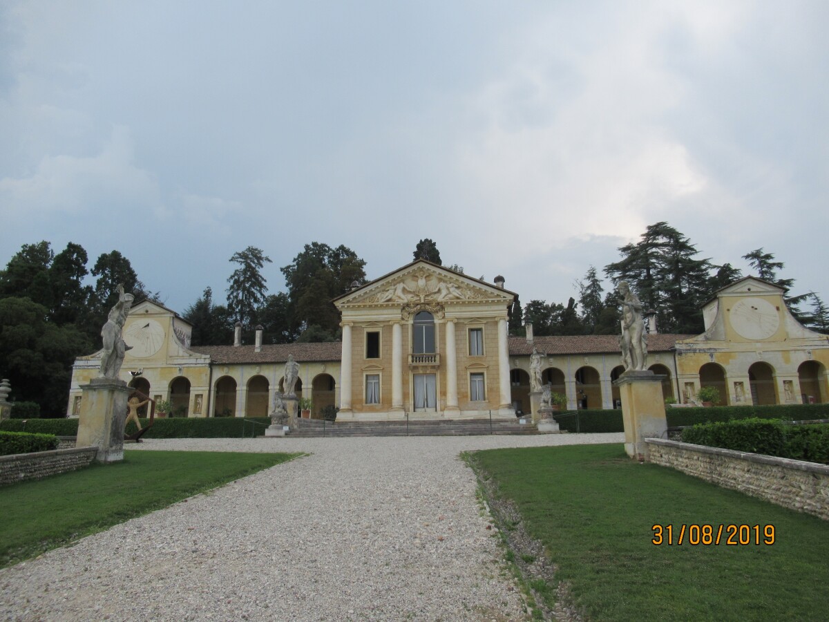 Prima tappa è la Villa Emo a Fanzolo costruita nella seconda metà del XVI secolo per la nobile famiglia veneziana. Impianto classico con corpo centrale riservato a abitazione principale, con pronao e quattro colonne, vestibolo, salone centrale e stanze ai lati. Le belle barchesse laterali prima di essere trasformate ad uso residenziale erano stalle, granai e cantine secondo l’uso delle ville di campagna del tempo. Le stanze sono mirabilmente affrescate da B. Zelotti con episodi tratti dalla mitologia, dalla storia romana e allegorie di vario genere. Intorno un bel giardino con parco. Scenografico e ammirevole!